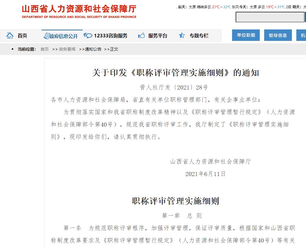 關(guān)于印發(fā)《職稱(chēng)評(píng)審管理實(shí)施細(xì)則》的通知 晉人社廳發(fā)〔2021〕28號(hào)