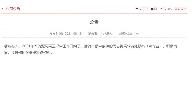 關(guān)于開(kāi)展2021年度全省工程系列能源專(zhuān)業(yè)高級(jí)工程師評(píng)審工作的通知